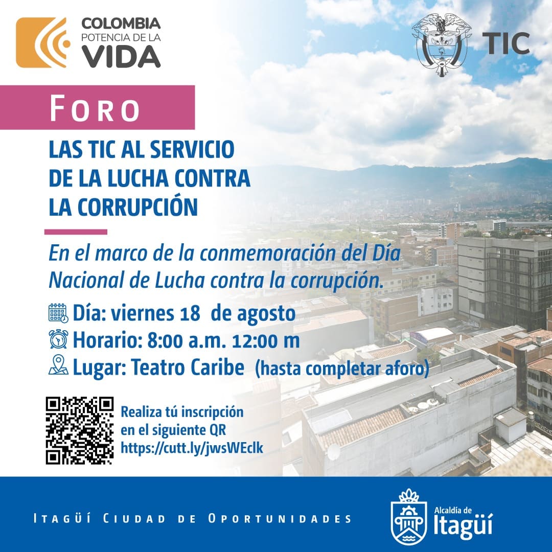 La finalidad del foro es visibilizar cómo las TIC han ayudado a la comunidad Itagüiseña a incentivar y hacer realidad la participación en las decisiones que se toman a nivel local, generando una estrategia para la gobernanza basada en la transparencia y aportando a la lucha contra la corrupción.